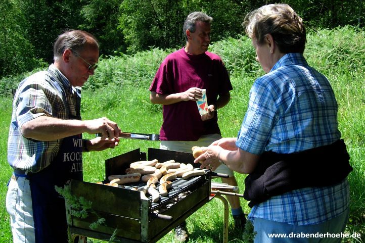 Nach der Hälfte der Strecke überraschte Ernst-Jochen Höhler die Wanderer mit erfrischenden Getränken. Das Ziel, die Sitzgruppe an der Brüderstraße, wurde um 12.30 Uhr erreicht. In harmonischer Atmosphäre verweilten die Teilnehmer nach dem Grillen noch einige Zeit im Schatten des Waldes. Jeder verließ zufrieden die Brüderstraße und man war sich einig, auch im nächsten Jahr wieder gemeinsam zu wandern.