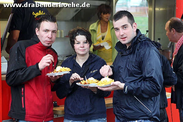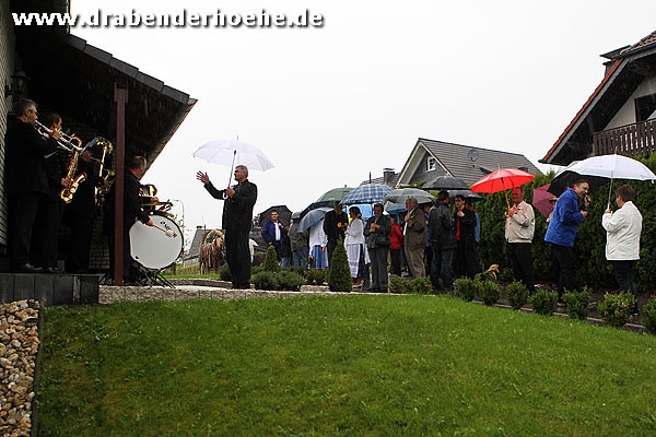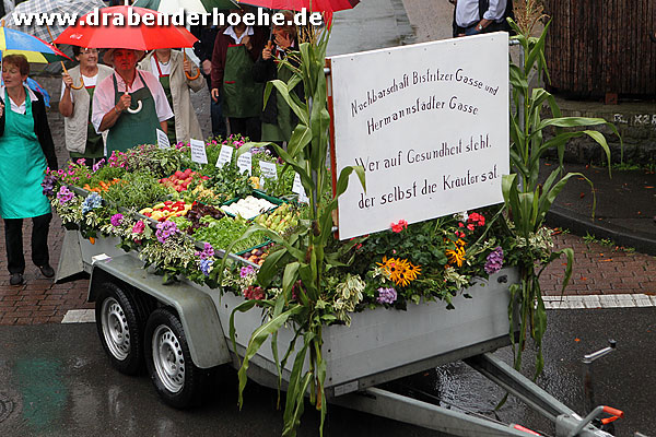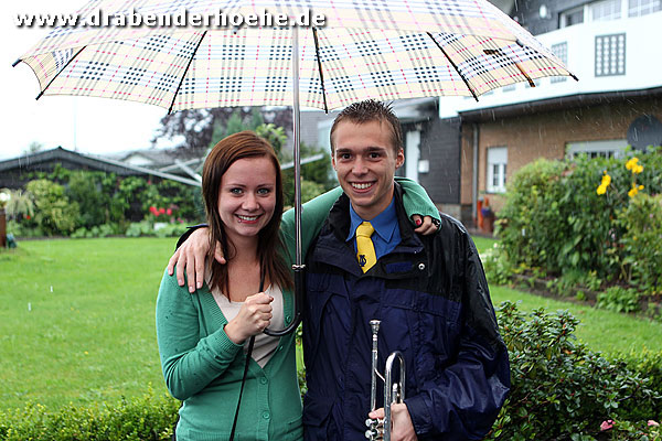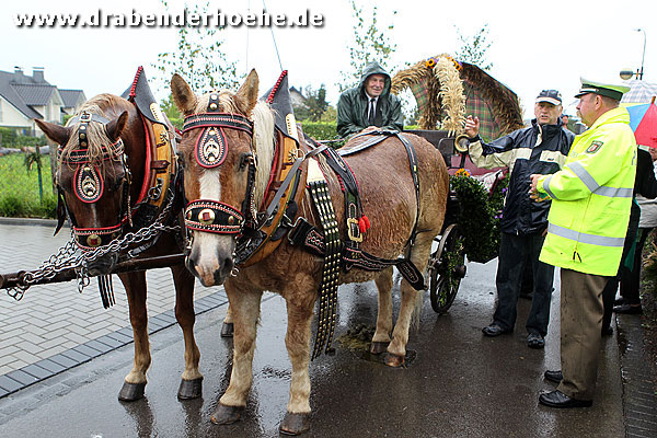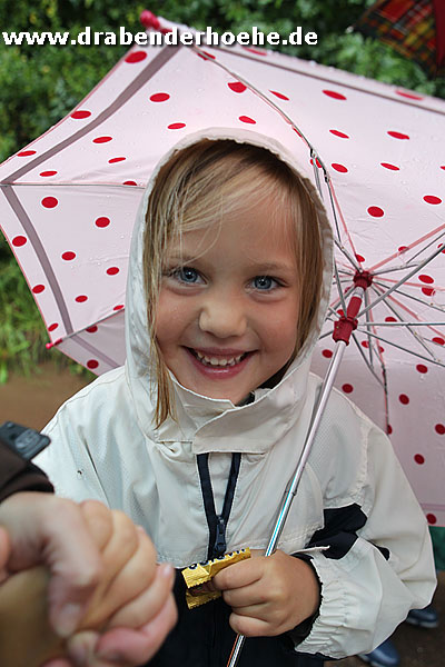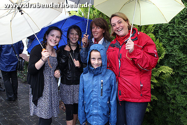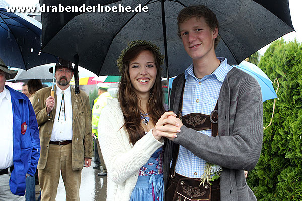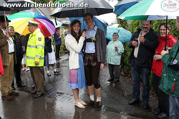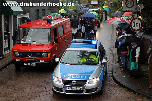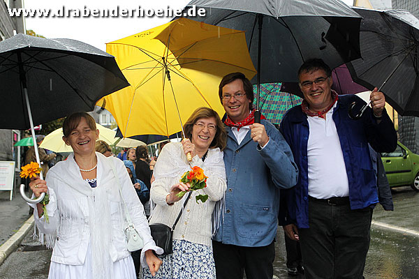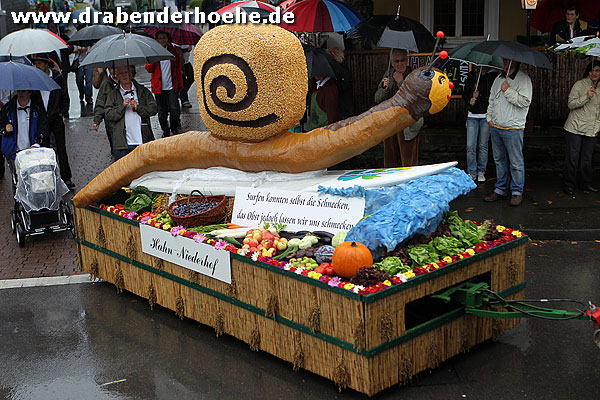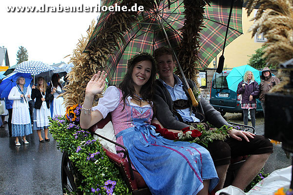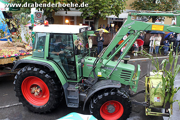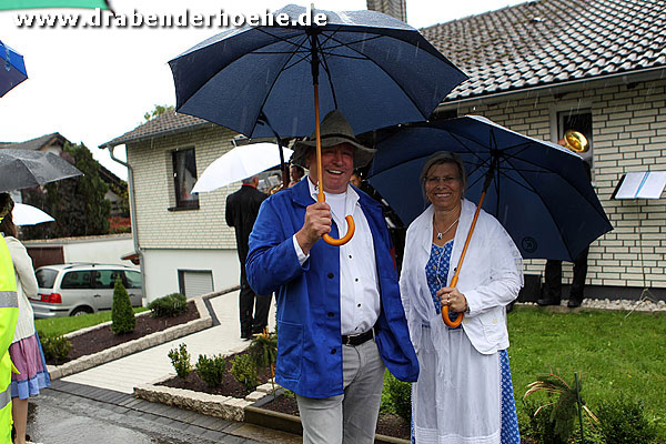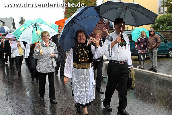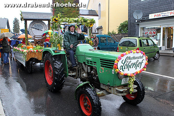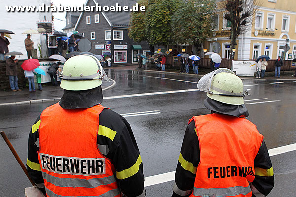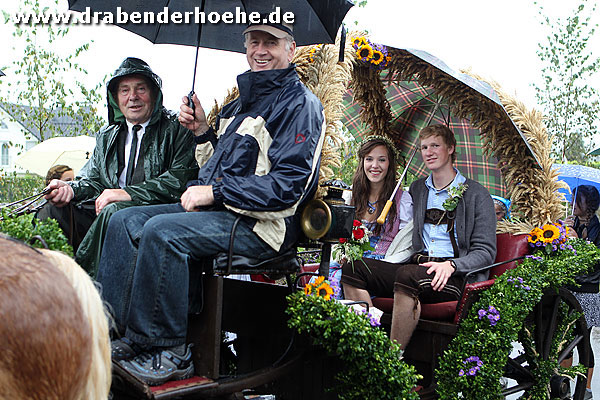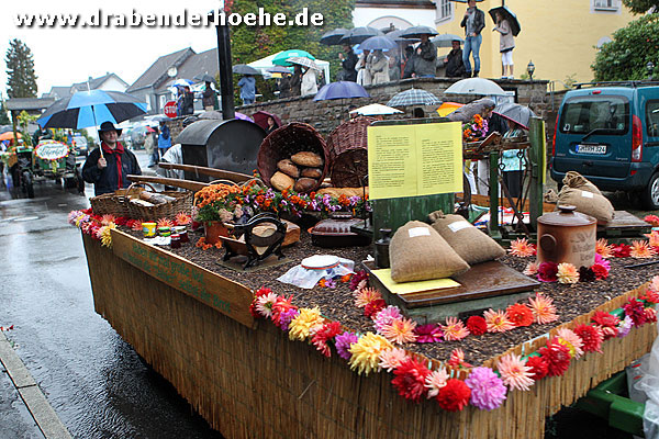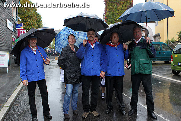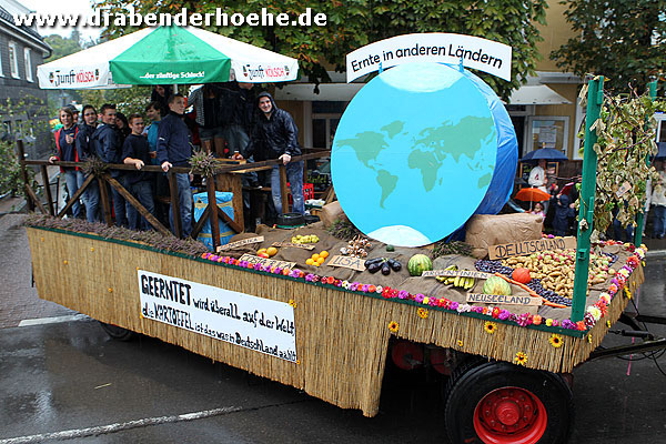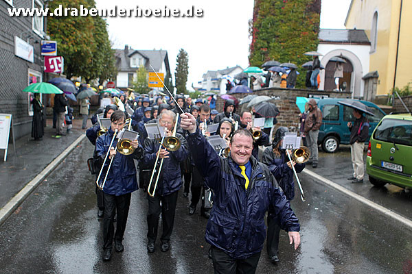 Regen ohne Ende begleitete am 11. September 2011 die Erntewagen und Fußgruppen beim Festumzug des 54. Erntedankfestes in Drabenderhöhe. Nur die wenigsten Zugteilnehmer und Zuschauer wagten sich ohne Regenschirm auf die Straße.