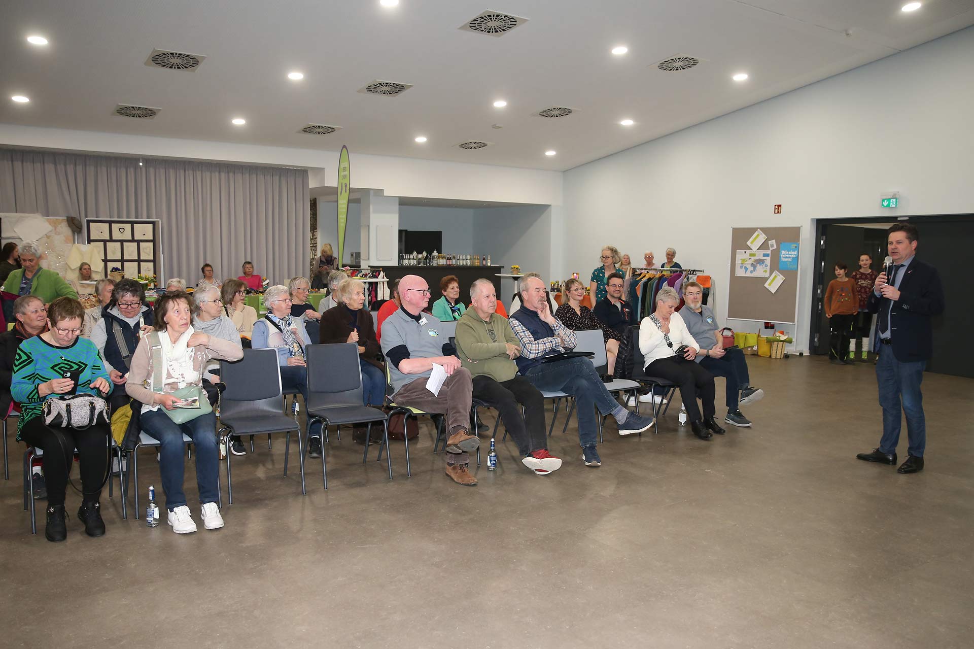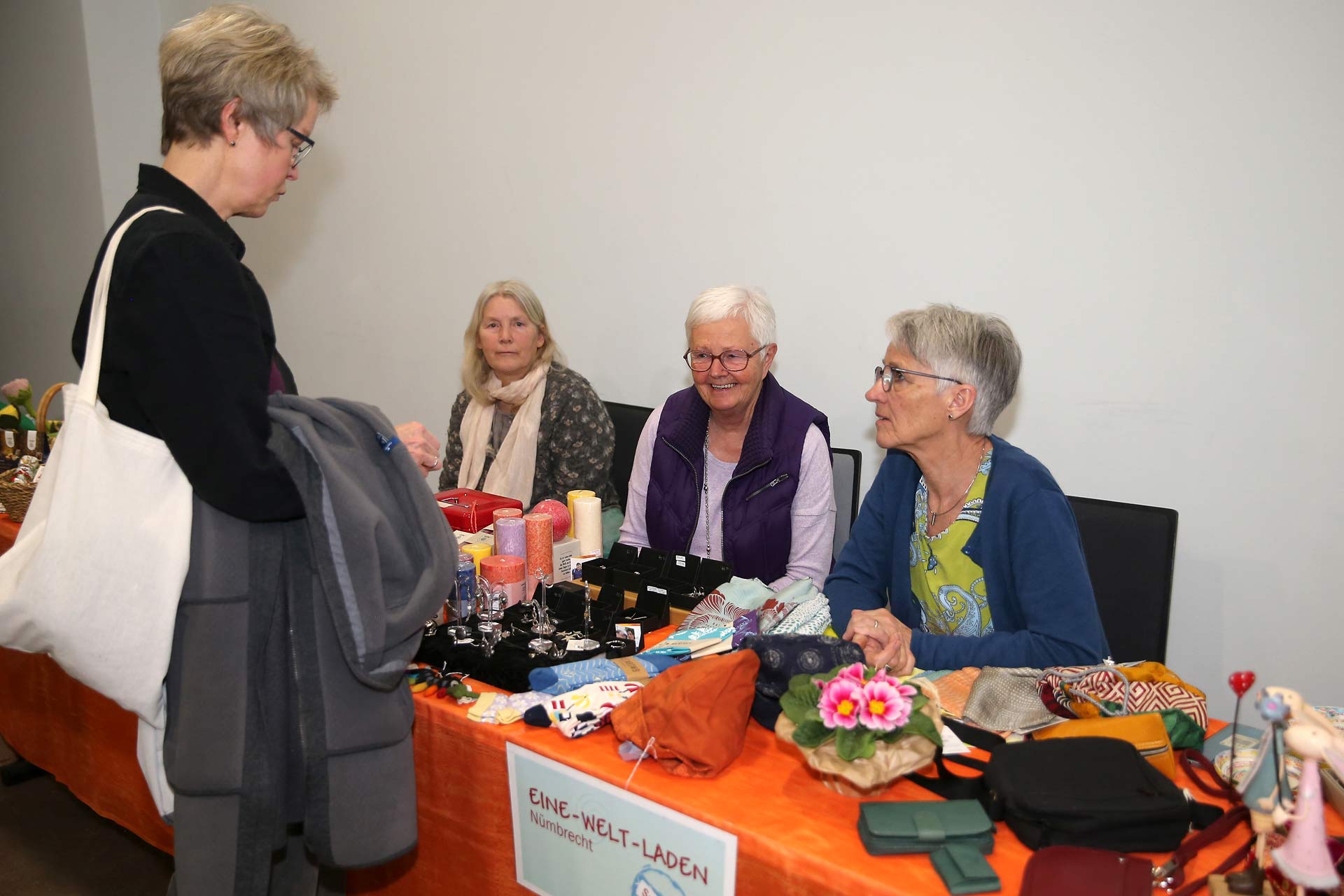 Im Stadtteilhaus waren zahlreiche Anbieterinnen und Anbieter vertreten. So präsentierte sich der Weltladen Nümbrecht mit Dekorativem und heiteren Accessoires für den Ostertisch. Hier wie auch am Stand des Wiehler Geschäfts „Schön Ding und Weile“ konnten die vielen Gäste zauberhafte Kleidung erwerben – und dabei sicher sein, dass bei der Herstellung faire Löhne gezahlt worden sind. Daneben spielte auch Ucycling eine wichtige Rolle. So waren die süßen „Bretzi“-Tiere von Künstlerin Christine Bretz zuvor abgelegte Pullover, die zerfledderte Jeans hatte sich in eine hübsche Tasche oder einen Rock verwandelt. Und die hinreißenden Patchworkdecken des Nähkreises der evangelischen Kirchengemeinde bestanden aus Stoffresten.