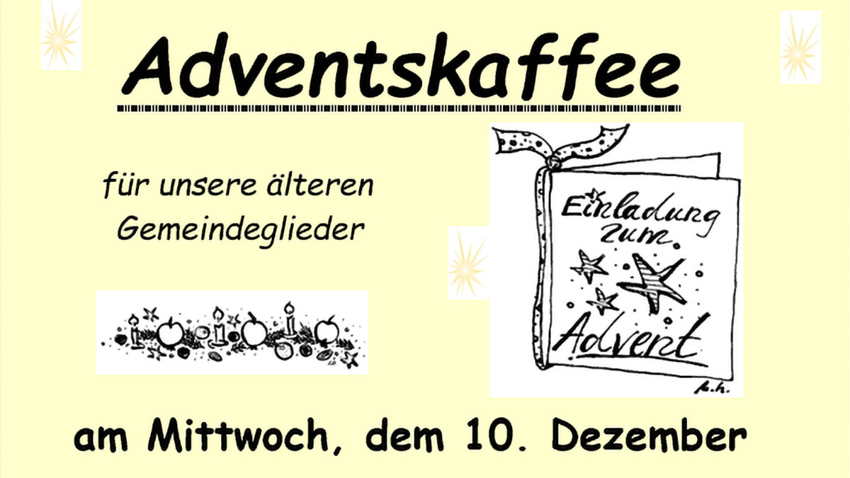 Alle älteren Gemeindeglieder sind herzlich eingeladen, diese Gelegenheit zur Begegnung und zur Einstimmung auf den Advent zu nutzen.