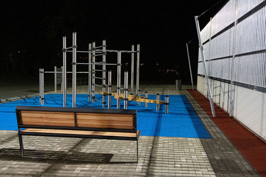 Die gesamte Fläche hat eine Größe von rund 2500 Quadratmeter. Zu dem 20 mal 13 Meter großen Kleinspielfeld gehören Basketball-Körbe über den Toren. Auch ein Calisthenics-Gerät bietet die neue Anlage, ein Fitnessgerät, das speziell dafür konzipiert ist, mit dem eigenen Körpergewicht zu trainieren. Dazu verfügt es über Elemente wie Klimmzugstangen, Dip-Barren und Sprossenwände, um Kraft, Ausdauer, Koordination und Körperbeherrschung zu verbessern. Ausführliche Anleitungen stehen auf einer Tafel neben dem Gerät.