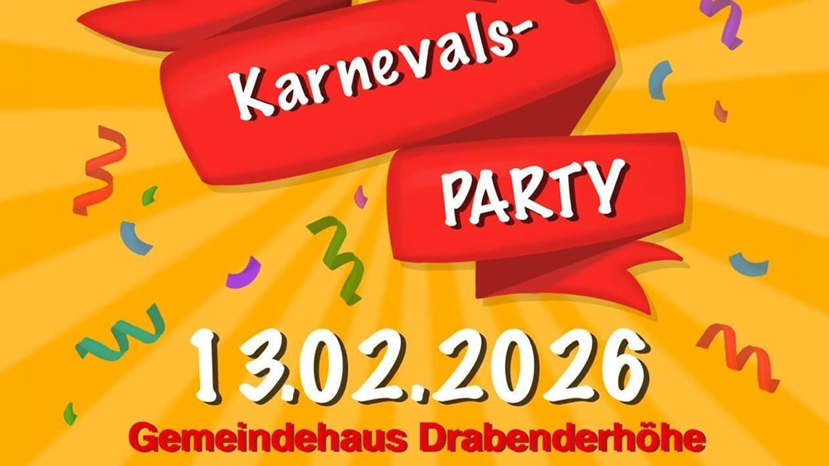 Am Freitag, dem 13. Februar 2026 findet eine Karnevalsparty der Evangelischen Jugend im Gemeindehaus Drabenderhöhe statt.